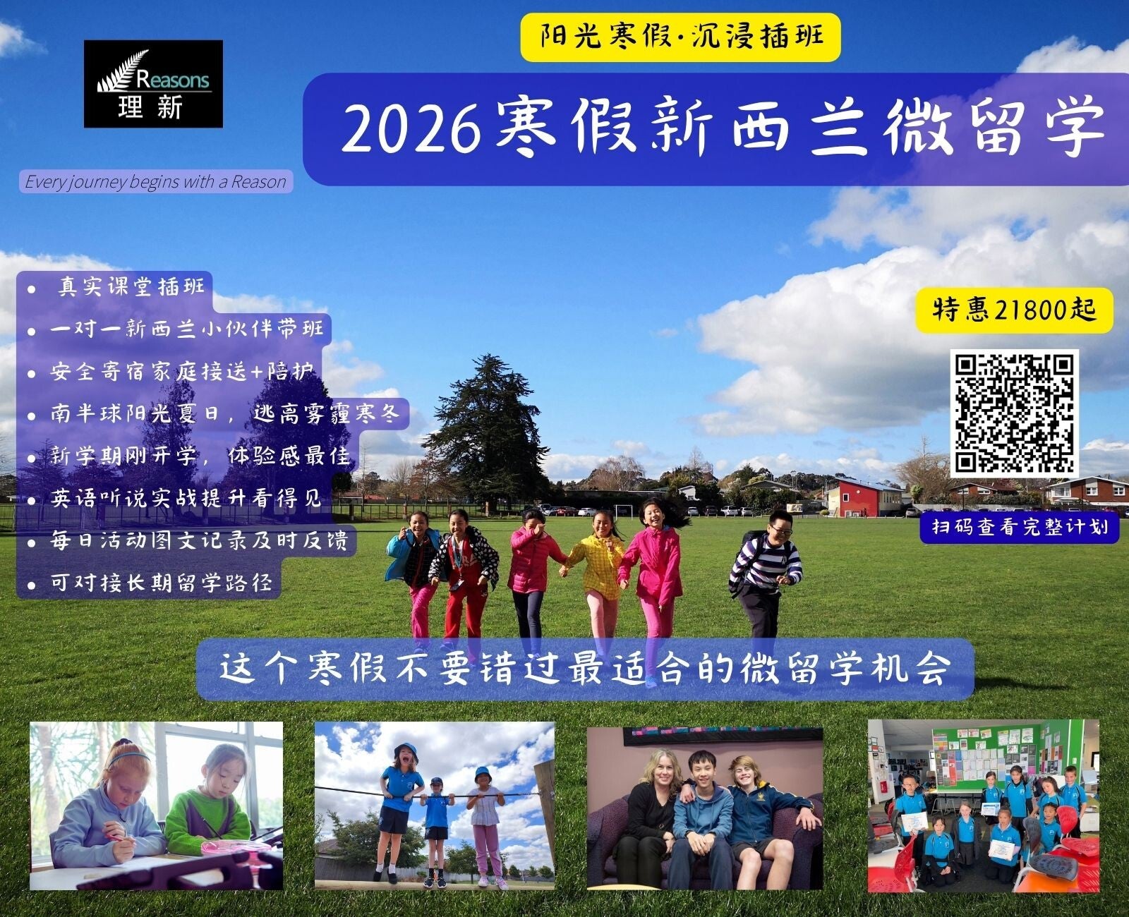 这就意味着,孩子可以完整参与四周的正式新西兰课堂插班,体验真正的英文教学环境!